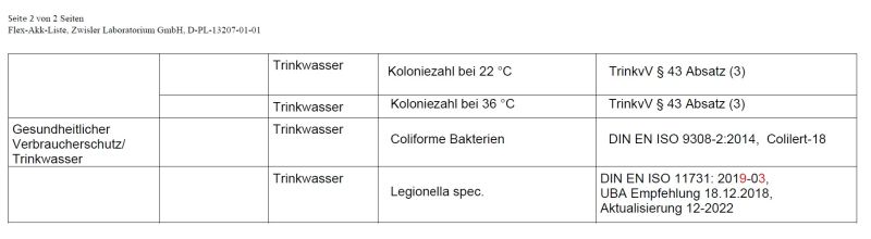 Prüfverfahren nach der Trinkwasserverordnung - TrinkwV -***Mikrobiologisch-hygienische Prüfungen im Lebensmittelbereich / Umgebung